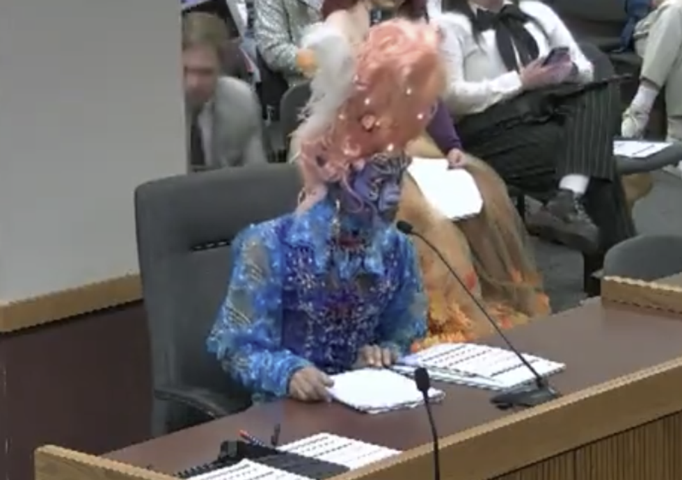 According to the blue drag queen, this is "white supremacist" and "transphobic.” He also said that the bill would "eradicate gender nonconforming people from the public square" and called Rep. Mazzie Christensen an "uncultured individual who hasn't actually been to a drag show."