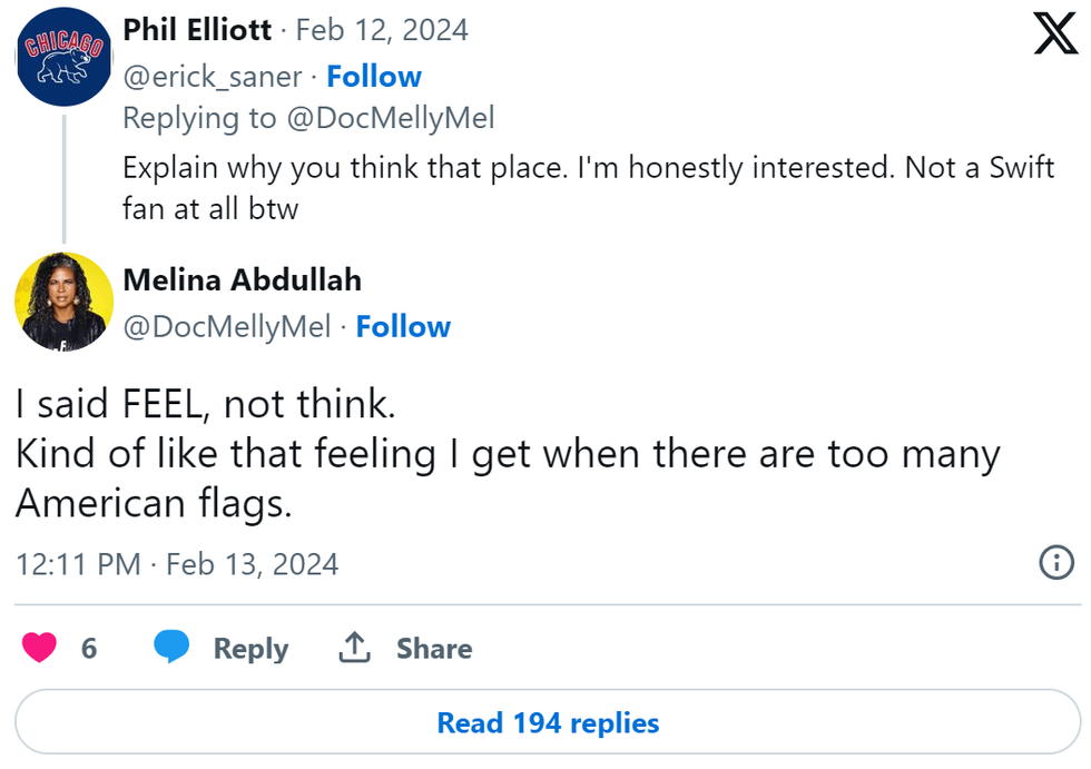 After the San Francisco 49ers lost, which was the team that Abdullah had been supporting, she claimed in another post on X that the loss was because of white supremacy.