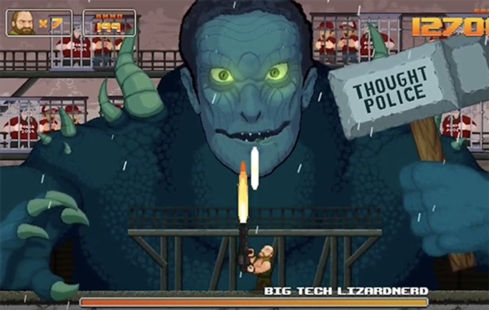 In NWO Wars, you can fight back... against a familiar-looking lizard.