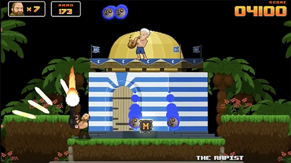 Watch: In Alex Jones' new video game, he fights Bill Clinton on Jeffrey Epstein's island with a giant machine gun