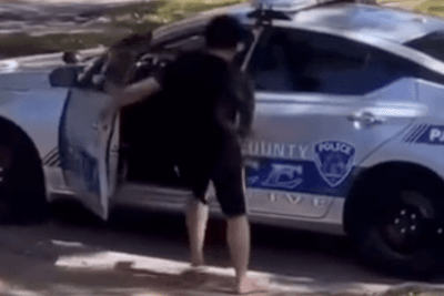 Watch: Woman tries stealing cop car, fails when a tree reminds her that she can't drive