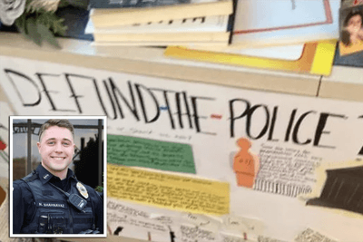 Activist teacher displays 'defund the police' sign after student's brother was killed in the line of duty