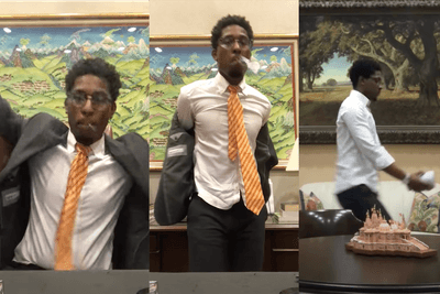 Purley, I'm assuming, at this point, decided he was probably about to be unemployed, so he rolled a blunt, put on a little DeBarge (a solid choice), and danced around the senator's office. He also recorded his final moments for the enjoyment of YouTube. Because, really, if you're going to go through the trouble of going out like this, you might as well go out in a blaze of glory.
