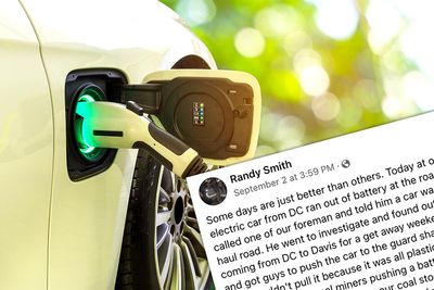 Warning: your brain may have trouble processing so much irony. Not unlike electric vehicles having trouble processing getting from point A to point B. A guy from Washington, DC, decided to take his electric vehicle out for a weekend getaway. It made it to West Virginia... where it broke down outside of a COAL PLANT. Five coal miners had to push the electric vehicle to a charging station.