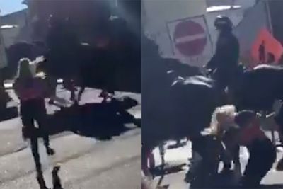 Police horses are very protective of their riders. Riders are very protective of their horses. And they both hate idiot protesters.