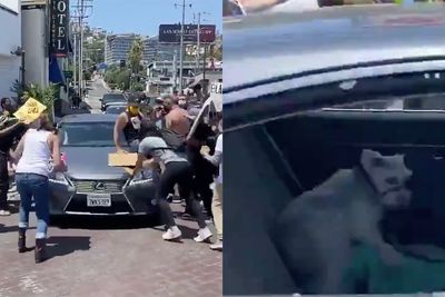 L.A. Rioters Attack Car, Smash Windows. And There's a Dog in the Backseat...