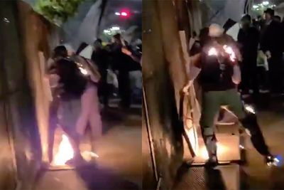 Watch: 'Peaceful' Protester Accidentally Sets a Comrade on Fire While 'Peacefully' Protesting