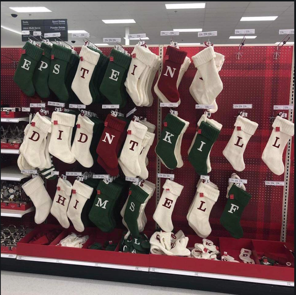 SEVEN - Continuing with our Christmas theme, some civilian hero made a little stocking arrangement, all hung with care. Unlike Epstein, who was hung haphazardly.