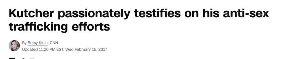 Kutcher has always come across as a solid dude to me. He's got some of your typical dumb-Hollywood opinions, but other things that he's spot on with. He's passionate about fighting child sex trafficking, and in 2017 he testified before Congress on how his company was helping fight it.