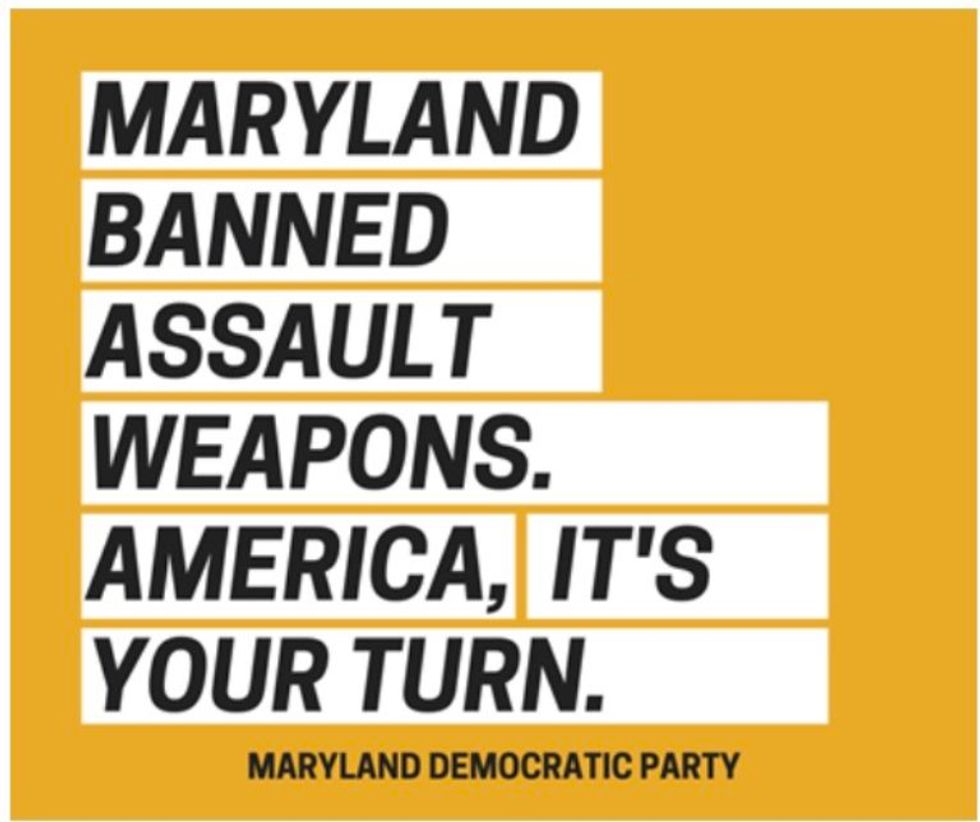 That's the setup here. Maryland is touting its ban on AR-15s and restrictive gun laws.
