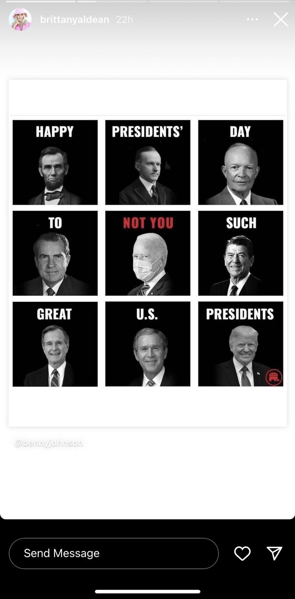 Jason Aldean's Wife Brittany Throws Snark at Joe Biden With Hysterical President’s Day Meme