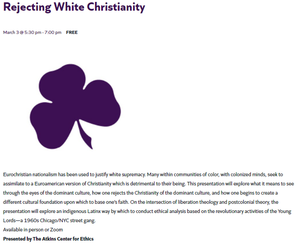 So, the left has to destroy the church. So long as the faithful remain, the left will always have an opposition—the Soviet Union banned religion—which is exactly why Miguel De La Torre went all-in to call for a rejection of “white Christianity” during his recent talk at Carlow University.