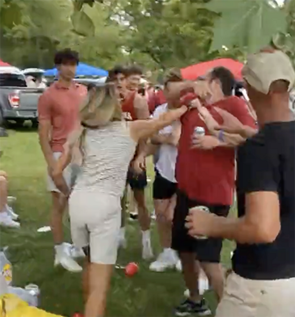 Watch: Someone's mother might have had too many White Claws at the college tailgate, started to fight EVERYONE