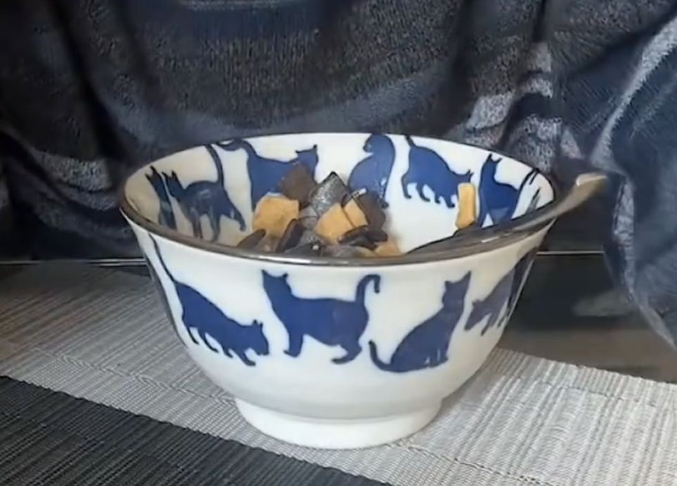 I stared at two things in the entire video: her eyebrows and her cat bowl. Based on this video alone, she will end up with more cats than bowls in no time.
