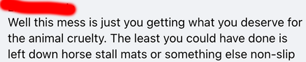 That's right. It's the shop's fault for not anticipating a ruminant mammal would come crashing through the front door and leave a safety mat out for it.