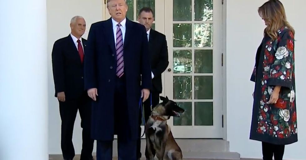 We interrupt everything else you were doing to bring you this video of a very good boi, Conan, who was given -- rightfully -- an award, a plaque and his own press conference for being a heroic floof in the takedown of islamic terrorist baddie (or renowned scholar, if you're working at Washington Post) Abu Bakr al-Baghdadi: