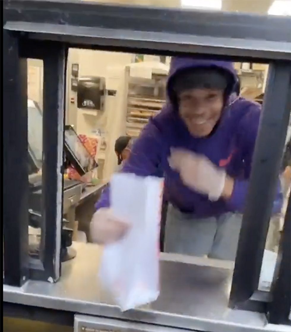 The hero is my man here working the drive-thru like nothing is going on. Other than Becki and Karen are at it again. He even threw up the deuces at the guy capturing the content.
