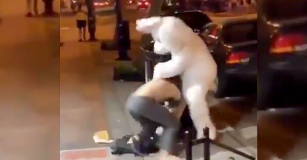 'Easter Bunny' Breaks Up a Street Brawl Outside of a Bar, But Not Without Landing a Few Blows of His Own