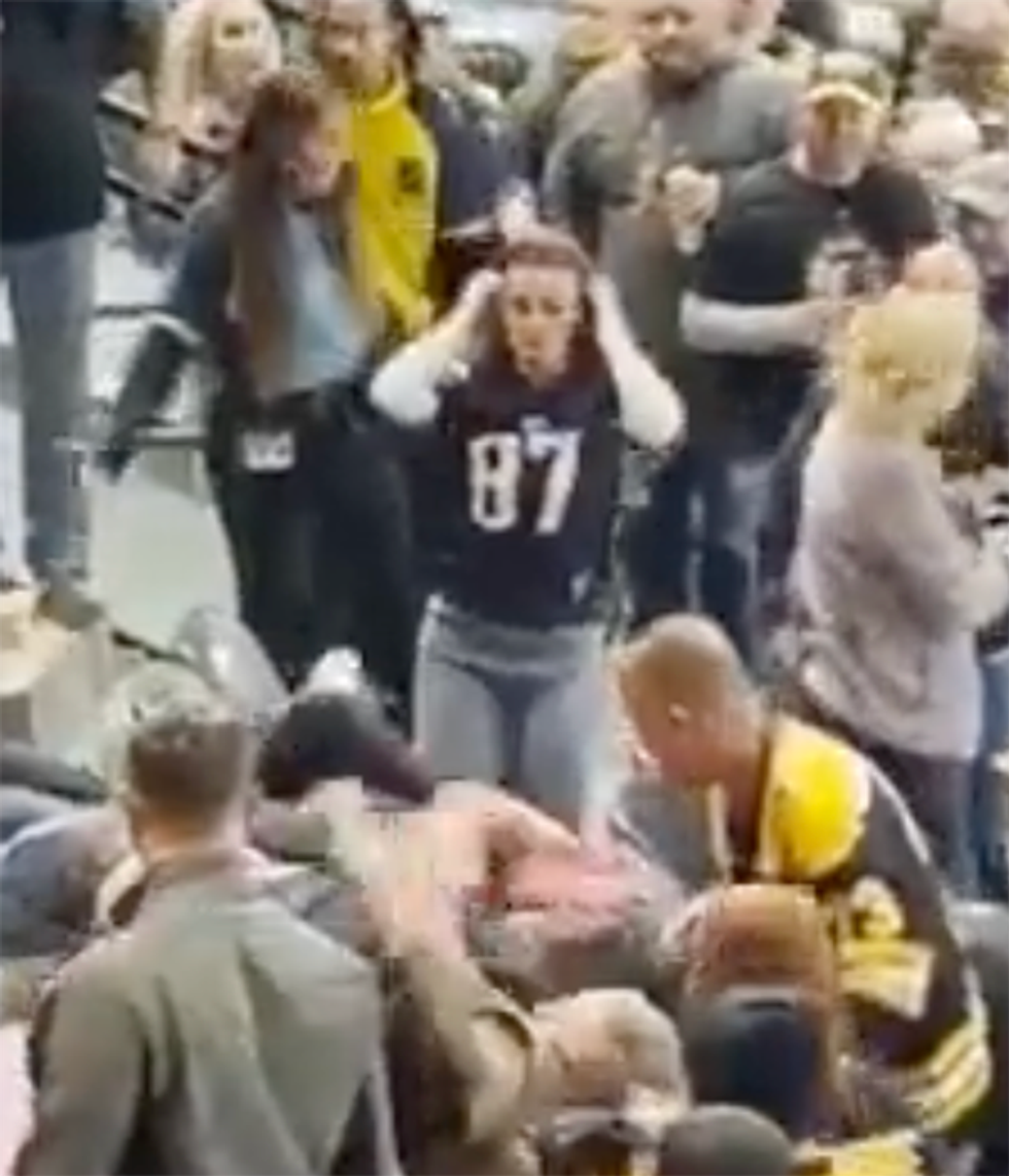 Earlier this week, we went to a fight when a hockey game broke out. Then, the players fighting on the ice stopped and were distracted by a bigger brawl happening in the stands. What appears to be started by a Bruins fan and a Coyotes fan arguing over which team was better at doing hockey things, we now know ended with some dude getting his fingertip bit off.