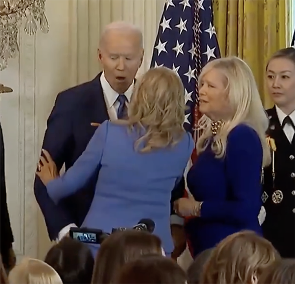 There was an event at the White House to celebrate Women's History Month. Biden had already, allegedly, according to critics, forgotten Kamala Harris' name, referring to her as "this woman." In fairness, it's a wonder he doesn't keep calling her Barack and wonder why he walks around the White House in a wig.