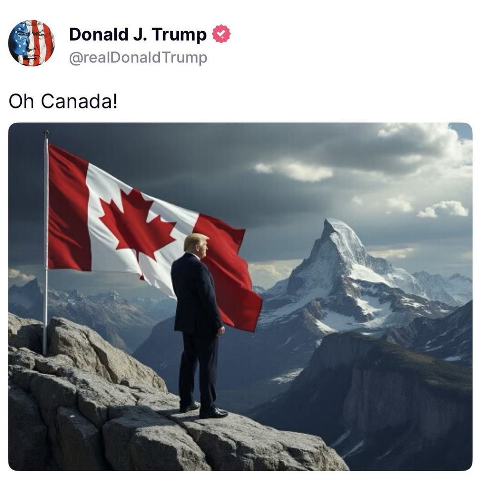 Trump threatened to impose massive tariffs on Canada if nothing is done about border issues and the trade deficit. The threat was enough for Prime Minister Justin "I Feel Pretty' Trudeau, Canada's walking pile of soy and hair goop, to travel to Mar-a-Lago for an audience with Trump. The unpopular Trudeau is facing his own electoral threat from the far superior Pierre Poilievre, so he's trying to convince people he's not as much of a Marxist twat as he bragged about being up until a week ago.