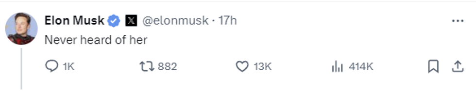 “For multiple days now a delusional woman TikToker and her TikToker boyfriend have been stalking and harassing me because they falsely believe I had an affair with Elon Musk and my family controls the Internet Archive. They’re now harassing and doxxing my family members,” she wrote in an X post.