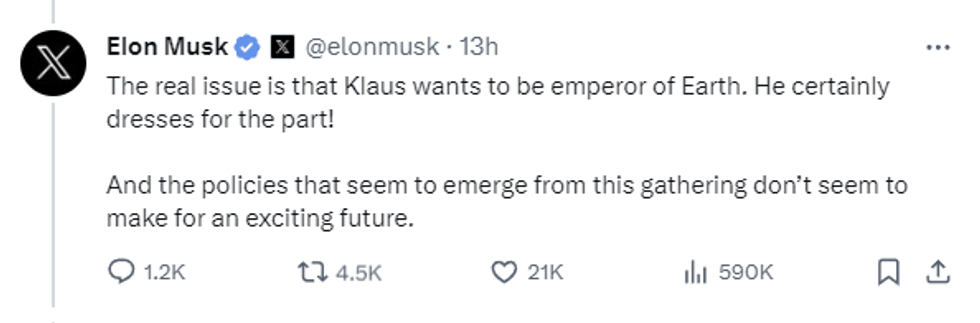 It is time to do our daily check-in of Davos and it looks like Elon has already said what we are all thinking.
