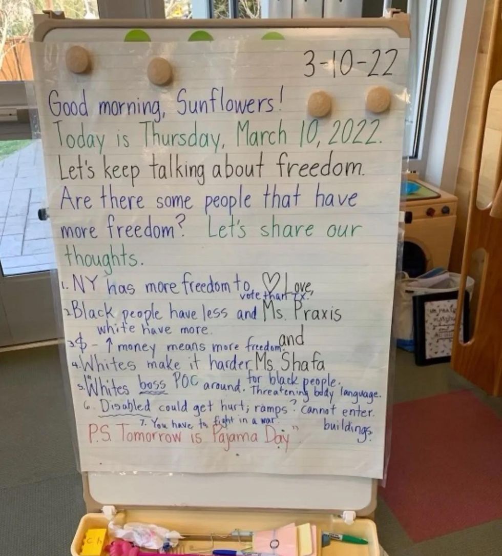 A parent leaked to Libs of TikTok (make sure you subscribe to her substack) how the school is indoctrinating her child. Here's a recent lesson plan: