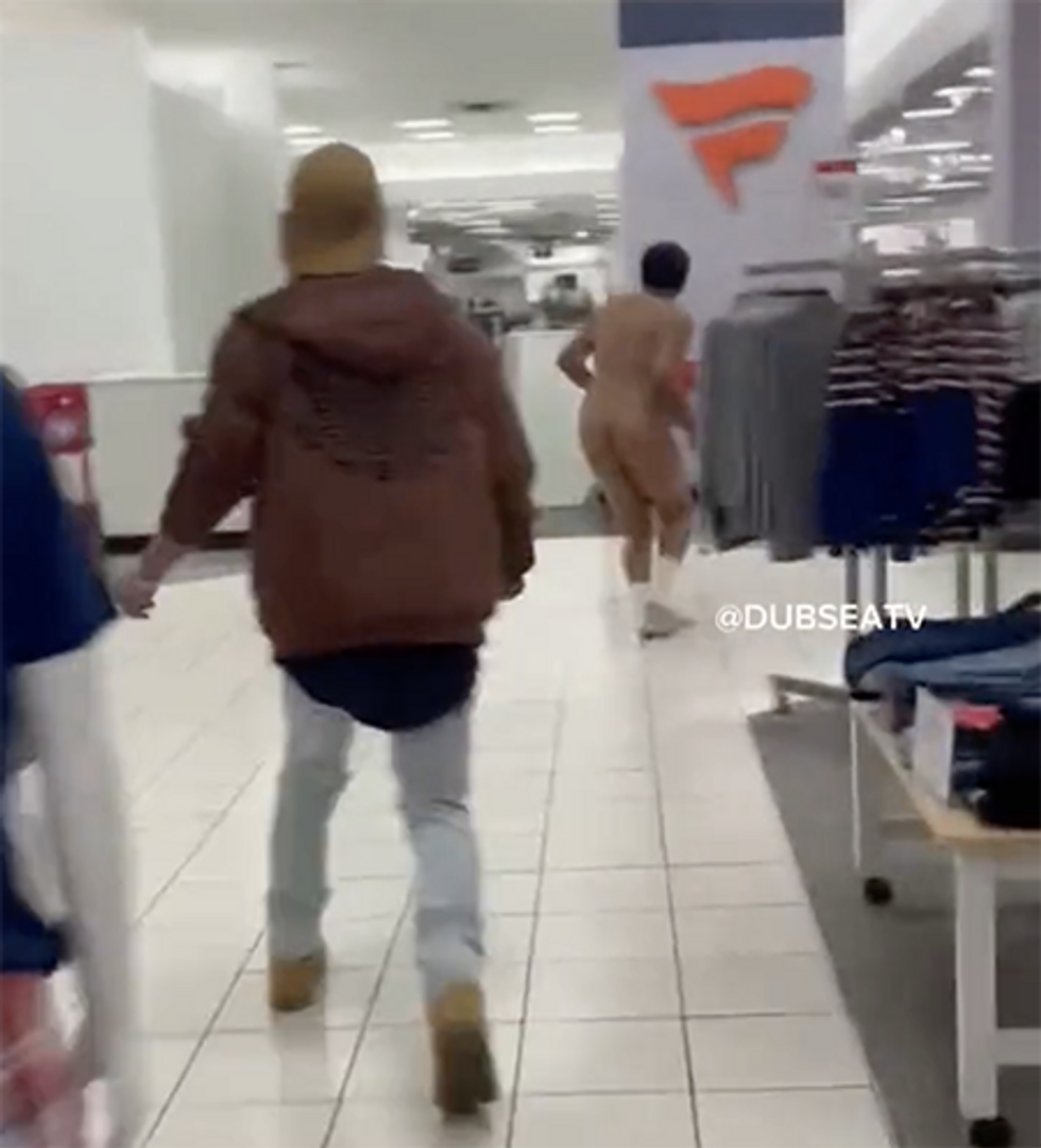 According to the @DubSeaTV account, billed #1 in Seattle entertainment, the incident takes place at JC Penny's in the South Center Mall. The naked man was, allegedly, trying to touch children. As is usually the case with naked man videos (yes, we've had multiple examples over the years), it is unclear how long the man was allowed to walk around in public with his dingly dangly out. You would think someone would call security.