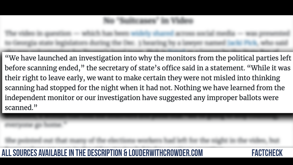 - FULTON COUNTY, GEORGIA: Observers left early, and the Secretary of State's office announced an investigation into why they left before the scanning ended.