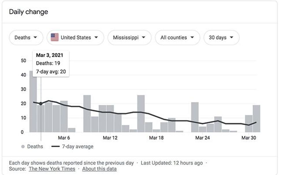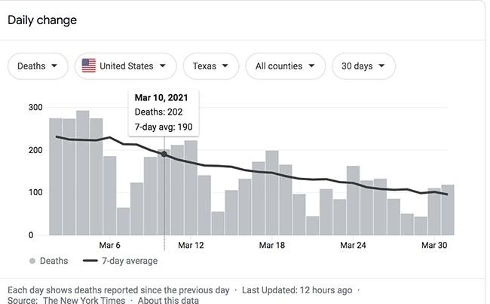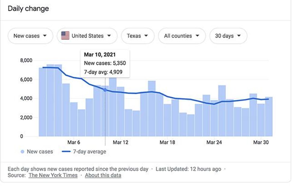 - Texas and Mississippi lifted their mask mandates at the beginning of March. Democrats and media of course framed this as stupid Republicans risking lives.