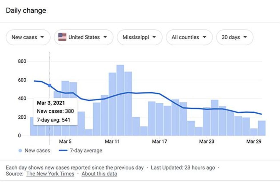 TEXAS AND MISSISSIPPI CASES DECREASE AFTER MASK MANDATES LIFTED