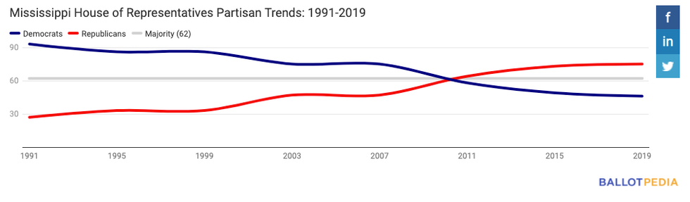 - Even so many Deep South states only became a majority Republican after the year 2000.