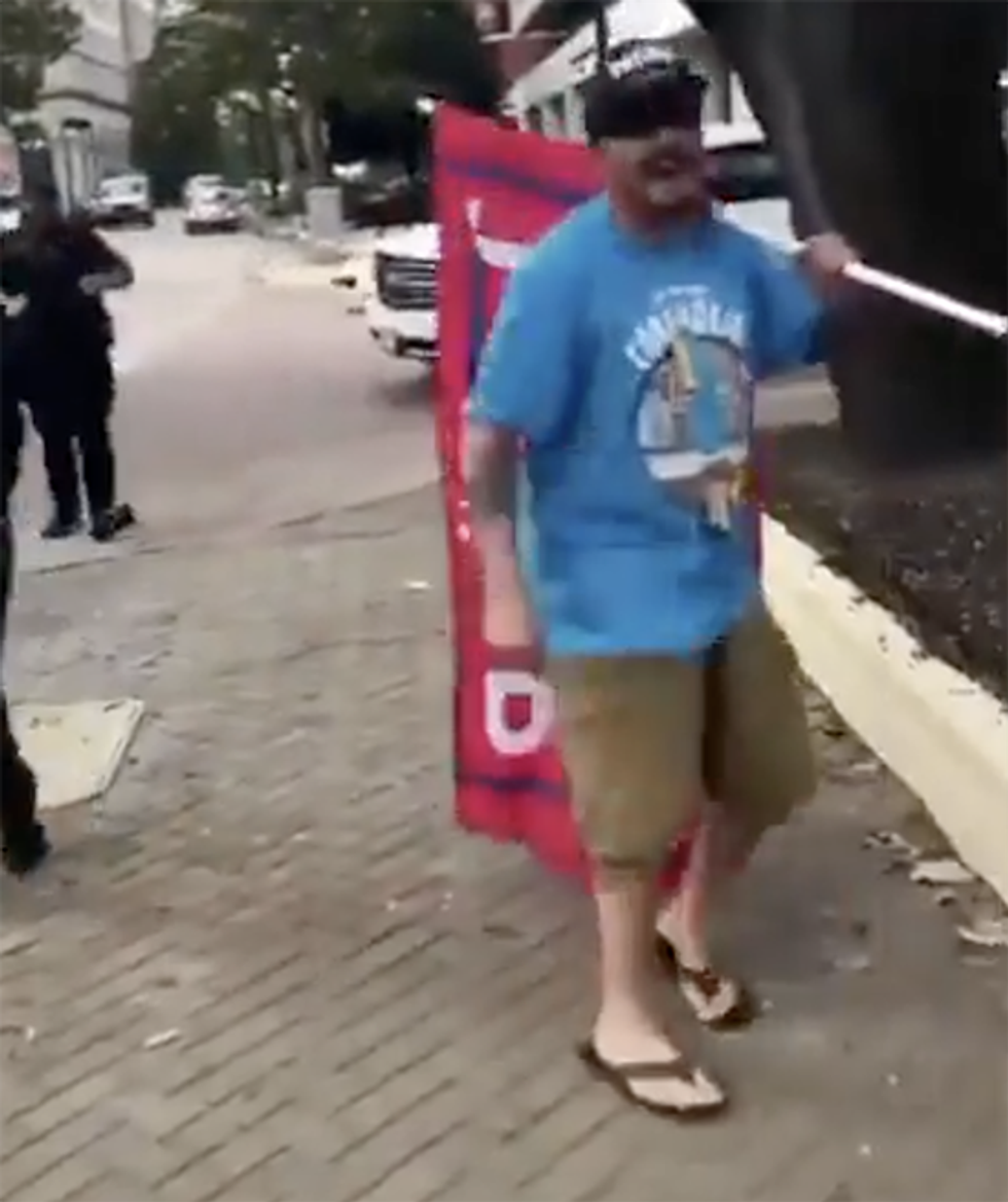 "Tell me you got that!" Driver speeds off after spitting on Trump flag, then something BASED happens