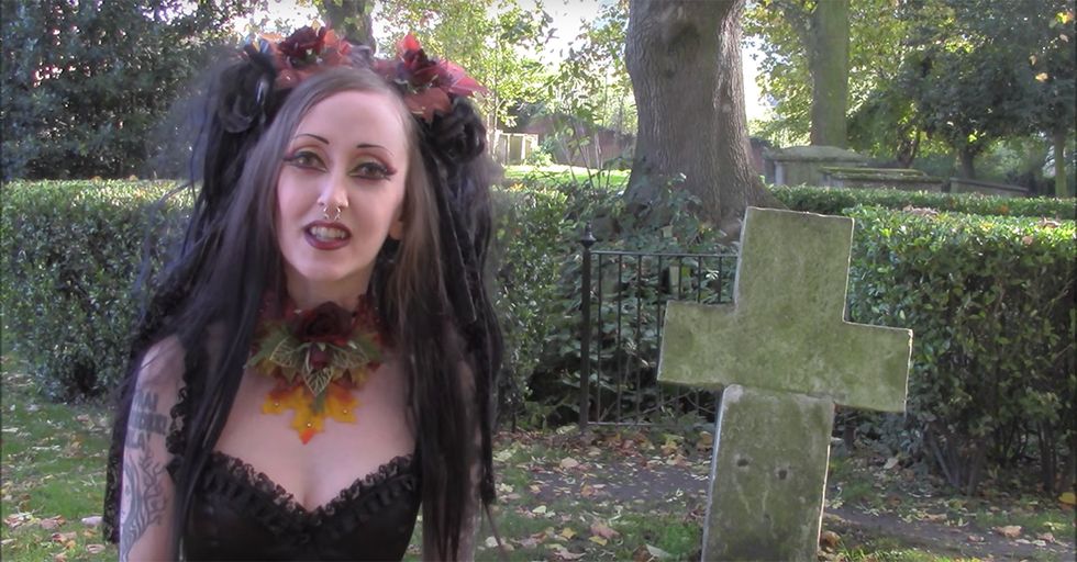 This may surprise you: This woman is a little bit of a wackadoodle. Here she is hanging out in a cemetery.