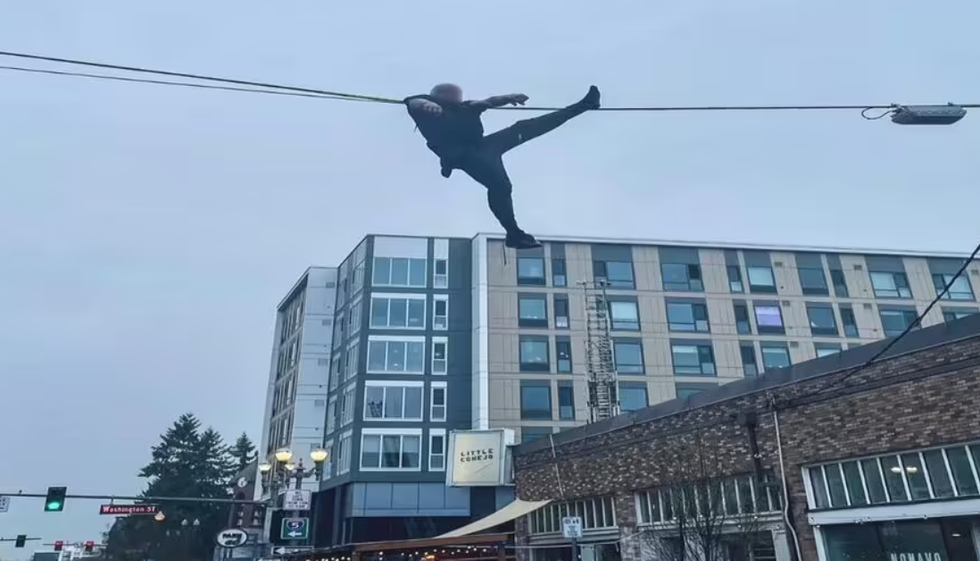 This man would much rather dangle from a telephone wire for nearly an hour than get arrested in a very liberal area and I am not really sure what to think about that.