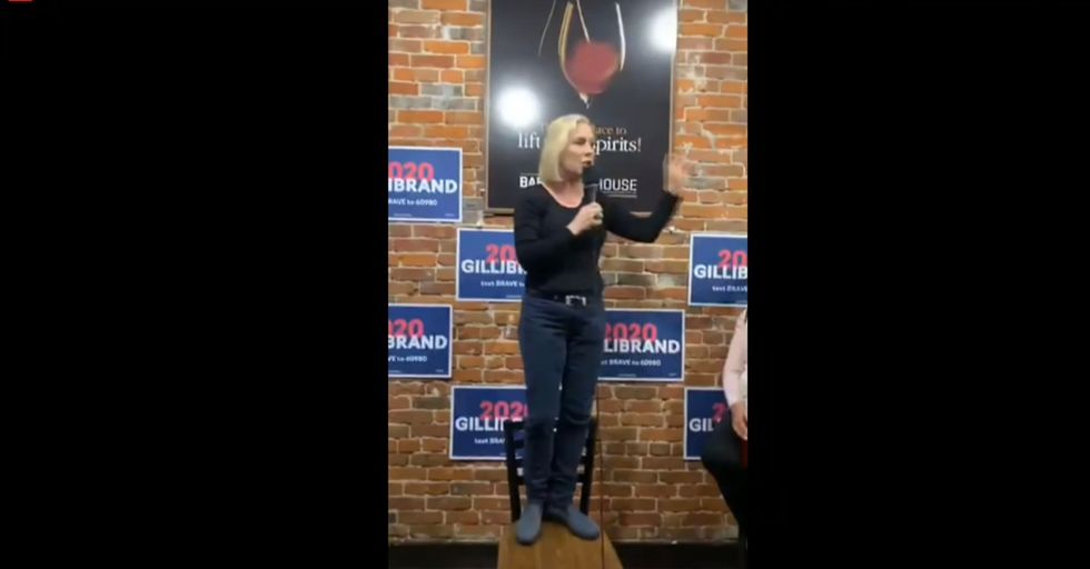 The 2020 Democrat primary is shaping up to be who can pander to illegal immigrants, aka not Americans, the most (see VIDEO: Beto O’Rourke Threatens to Tear Down the Border Wall and Democrats Want Background Checks for Everyone… Except Illegal Immigrants). When it comes to shameless pandering, few do it better than Tracy Flick Kirsten Gillibrand. Who recently stood up on a chair and started yelling things at Iowa patrons at an eatery somewhere.
