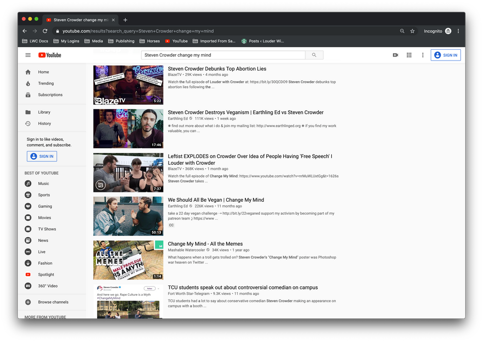 And there we have some Change my Minds... from channels not Steven Crowder. The above screenshots are from today. So...